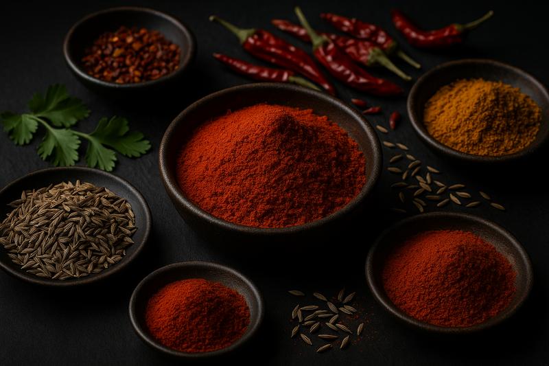 1. Chili poeder – Lijkt qua kleur sterk op paprikapoeder, maar is pittiger. Prima keuze voor stoofschotels, chili en sauzen.